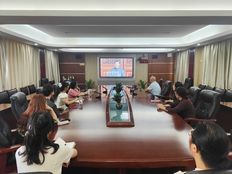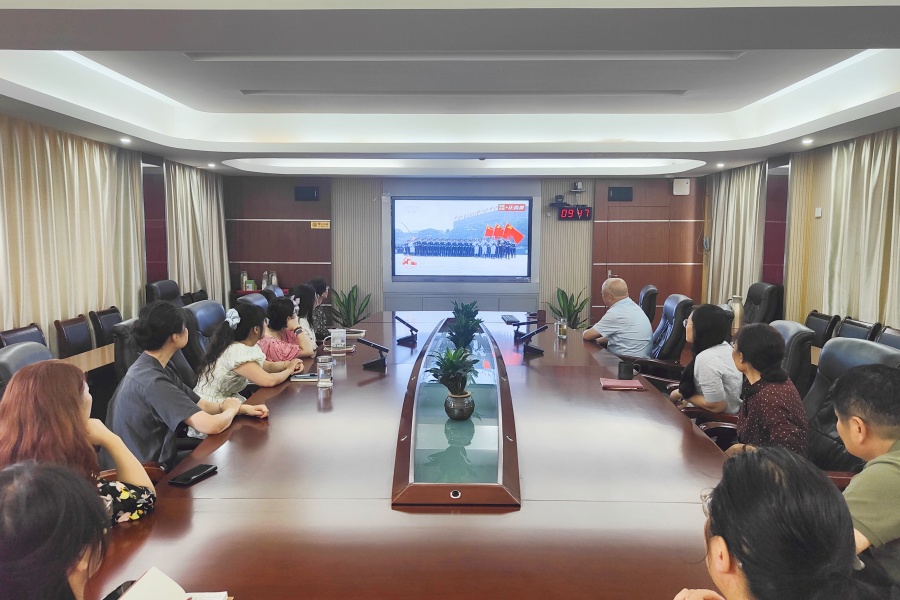 在庄严的升旗仪式后,习近平总书记发表了重要讲话,深刻阐明中国人民抗日战争胜利的伟大意义,郑重宣示中国坚定不移走和平发展道路、推动构建人类命运共同体的坚定决心。随后进行的阅兵式充分展示了中国人民解放军是一支听党指挥、能打胜仗、作风优良的威武之师、文明之师、正义之师,展现了我国国防现代化事业发展取得的显著成果,共同铭记正义必胜、和平必胜、人民必胜的伟大真理。全体教职工聚精会神地聆听总书记讲话,观看阅兵式,现场多次响起热烈掌声。